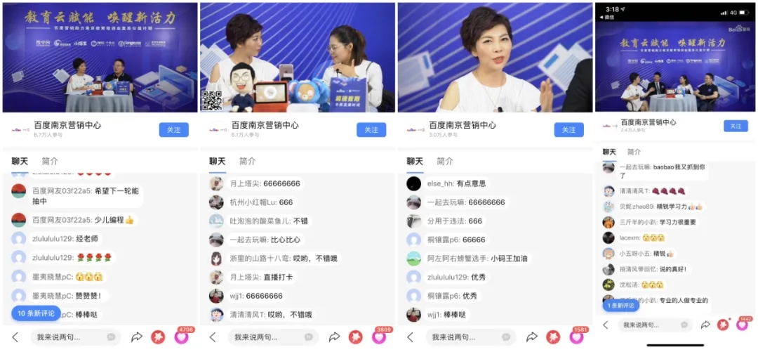 直播現(xiàn)場,“教育云賦能  喚醒新活力”——百度營銷助力南京教育培訓(xùn)業(yè)復(fù)蘇公益計劃正式啟動。此次公益計劃意在通過系列舉措,進一步加速南京教育培訓(xùn)業(yè)復(fù)蘇的腳步,推動教育機構(gòu)在后疫情時代下的快速發(fā)展。