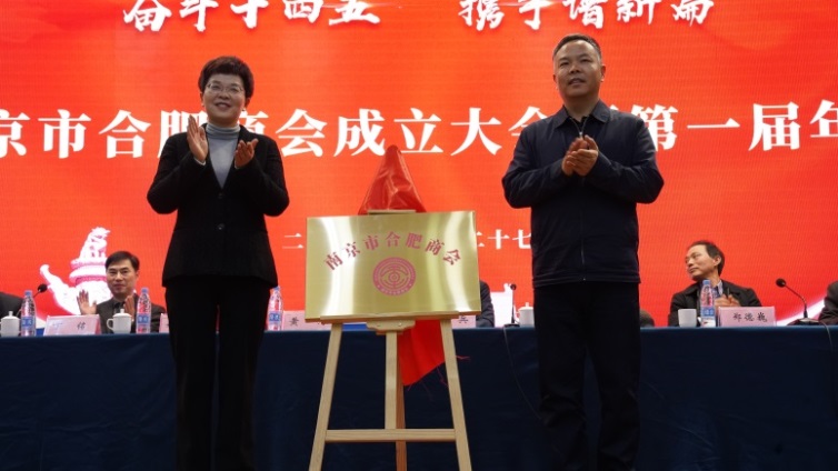 南京市政協(xié)副主席黃河,合肥市政協(xié)副主席、市工商聯(lián)主席姚亞妹現(xiàn)場(chǎng)共同為南京市合肥商會(huì)揭牌。