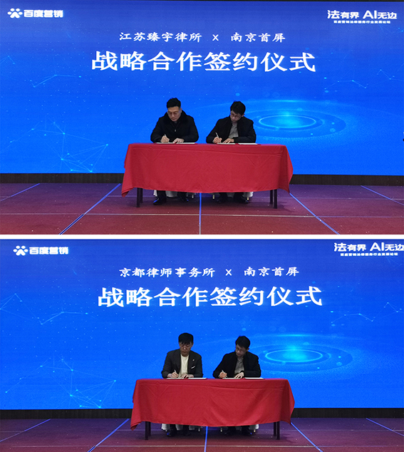 在多年的發(fā)展中,離不開廣大法律服務(wù)行業(yè)客戶的信任與支持,會上南京首屏與江蘇臻宇律所、京都律師事務(wù)所簽訂戰(zhàn)略合作協(xié)議,借助百度平臺推動(dòng)律所的創(chuàng)新式營銷能力,促進(jìn)法律服務(wù)行業(yè)的發(fā)展。